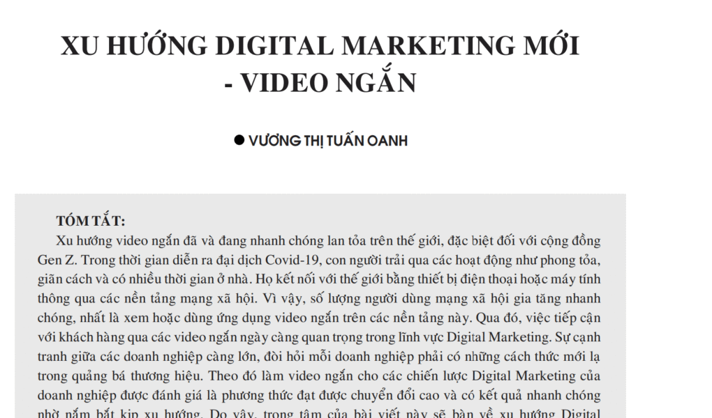 - Tiêu đề bài báo: XU HƯỚNG DIGITAL MARKETING MỚI – VIDEO NGẮN